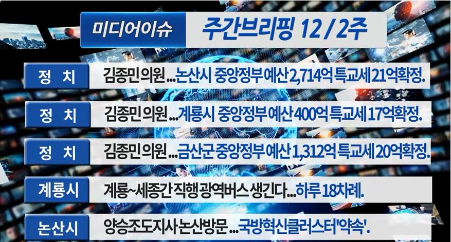 ´õºÒ¾î¹ÎÁÖ´ç ±èÁ¾¹Î ±¹È¸ÀÇ¿øÀÌ ³í»ê°ú °è·æ ±Ý»êÀÇ Á¤ºÎ¿¹»ê 4,453¾ï¿ø°ú ÇÏ¹Ý±â Æ¯º°±³ºÎ¼¼ 58¾ï¿øÀ» È®º¸Çß´Ù´Â ¼Ò½ÄÀ» ÀüÇß½À´Ï´Ù. À̹ø ¿¹»êÈ®º¸·Î ÀÎÇØ °¢ Áö¿ª±¸ Çö¾È»ç¾÷ ÇØ°á¿¡ Àû±Ø Ȱ¿ëµÉ °ÍÀ¸·Î Àü¸ÁµÇ°í Àִµ¥¿ä, ¸ÕÀú ³í»ê ¿¹»ê È®º¸ÀÇ ±¸Ã¼Àû ³»¿ëÀ» º¸¸é ±¹¹æ ±³À°¡¤¿¬±¸ Ŭ·¯½ºÅÍ Á¶¼º ¿¬±¸ ¿ë¿ª 2¾ï¿ø, È£³²¼± Á÷¼±È °í¼ÓÈ»ç¾÷ ±âº»°èȹ¼ö¸³ºñ 5¾ï¿ø, ³í»ê ¾çÃ̸é ÀÎõÁö±¸ ¸é´ÜÀ§Çϼöó¸®Àå ¼³Ä¡ 14¾ï¿ø, À°±º ½Åº´ÈÆ·Ã¼Ò º´¿µ»ýȰ°ü °³¼± 30¾ï¿ø, À°±º ½Åº´ÈÆ·Ã¼Ò Ãë»ç½Ä´ç ½ÅÃà 3¾ï¿ø, ±¹°¡ÇÏõÁ¤ºñ»ç¾÷ 345¾ï¿ø, ³í»ê½Ã ¼Ò°¢½Ã¼³ ¼³Ä¡ 12¾ï¿ø, ¿¬»ê µÎ¸¶ ±¹µµ´ëü ¿ìȸµµ·Î °Ç¼³ 242¾ï 3õ¸¸¿ø, ÇѼ¾º´ °£À̾ç·Î½Ã¼³ ¿î¿µ 2õ¸¸¿ø, ³óÃÌÀ¯ÇÐ Áö¿ø 3õ¸¸¿ø µîÀÔ´Ï´Ù. ¶ÇÇÑ ÇÏ¹Ý±â Æ¯º°±³ºÎ¼¼´Â ÀºÁø¸é ½Ã¹¦¸® À§Çèµµ·Î °³¼±°ø»ç 10¾ï¿ø, ¹æ¹ü¿ë cctv ½Å±Ô ¼³Ä¡»ç¾÷ 5¾ï¿ø, ÀÎõ±³ º¸¼öº¸°°ø»ç 3¾ï¿ø, °°æ À¯±³¹®È Å׸¶°ø¿ø Á¶¼º»ç¾÷ 3¾ï¿ø µîÀÌ Æ÷ÇԵƽÀ´Ï´Ù. ´ÙÀ½ °è·æÁö¿ª ÁÖ¿ä ¿¹»êÈ®º¸ »ç¾÷À» º¸¸é °è·æ½Ã »ýȰÀÚ¿øÈ¸¼ö¼¾ÅÍ È®Ãæ 2¾ï 7õ¸¸¿ø, ±¹¹æ ±³À° ¿¬±¸ Ŭ·¯½ºÅÍ Á¶¼º ¿¬±¸ ¿ë¿ª 2¾ï¿ø, È£³²¼± Á÷¼±È °í¼ÓÈ»ç¾÷ ±âº»°èȹ¼ö¸³ºñ 5¾ï¿ø, °è·æ û¼Ò³â º¹ÇÕ¹®È¼¾ÅÍ 29¾ï¿ø, °íÅÃÁ¾°«ÁýȰ¿ë»ç¾÷ 1¾ï 3õ7¹é¸¸¿ø, ½ÅÁ߳⠰æ·ÂÇü ÀÏÀÚ¸®»ç¾÷ 1¾ï 3õ 7¹é¸¸¿ø, Áö¿ª»ç¶û»óǰ±Ç ¹ßÇà Áö¿ø 1¾ï 9õ2¹é¸¸¿ø, °¡Á·¼¾ÅÍÁ¶¼º 4¾ï 5õ¸¸¿ø, °è·æ½Ã ¼Ò°¢½Ã¼³ 2¾ï 4õ¸¸¿ø, ¿¬»ê µÎ¸¶ ±¹µµ´ëü ¿ìȸµµ·Î °Ç¼³ 242¾ï 3õ¸¸¿ø, ¾îµµ°³º¸¼ö»ç¾÷ 1¾ï 3õ¸¸¿ø, ±¹¹Îü·Â100 »ç¾÷ 3¾ï 3õ¸¸¿øÀÔ´Ï´Ù. °è·æ½Ã ÇÏ¹Ý±â Æ¯º°±³ºÎ¼¼´Â ÃÑ 17¾ï¿øÀ¸·Î ¾ö»ç¸® ÁÖ°ÅÁöÁÖÂ÷Àå Á¶¼º 7¾ï¿ø, µµ°î¸® µµ½Ã°èȹµµ·Î °³¼³ 5¾ï¿ø, »ó¿øÃµ ¿À¼ö°ü·Î Á¤ºñ 5¾ï¿ø µîÀÌ Æ÷ÇԵƽÀ´Ï´Ù. ¸¶Áö¸·À¸·Î ±Ý»ê Áö¿ªÀº ±Ý»ê Áø»ê ±¹Áöµµ°Ç¼³ 2¾ï¿ø, ±Ý»ê Áö½Ä»ê¾÷¼¾ÅÍ °Ç¸³ 10¾ï¿ø, ÀÀ±ÞÀÇ·á °íµµÃë¾àÁö¿ø Áö¿ø 1¾ï 2õ¸¸¿ø, ¼¼°èÁß¿ä ³ó¾÷À¯»ê º¸Àü°ü¸® 1¾ï 4õ¸¸¿ø, ³²ÀÏ ±Ý»ê ±¹µµ°Ç¼³ 32¾ï 4õ¸¸¿ø, µµ½ÃÀç»ý»ç¾÷ 40¾ï 5õ¸¸¿ø, ¼ºÀåÃËÁøÁö±¸ °³¹ß Áö¿ø 41¾ï 5õ¸¸¿ø, ¹Ì¼¼¸ÕÁö Àú°¨ Â÷´Ü½£ Á¶¼º 20¾ï¿ø, üÀ°ÁøÈï½Ã¼³ °Ç¸³ 16¾ï 5õ9¹é¸¸¿ø, ¹¦¸ñ»ý»ê 2¾ï 7õ¸¸¿ø, ºñÁ¡¿À¿° Àú°¨»ç¾÷ 44¾ï 9õ¸¸¿ø, °³¹ßÁ¦Çѱ¸¿ª ÁÖ¹ÎÁö¿ø 5¾ï 1õ¸¸¿ø, ¾îµµ°³º¸¼ö»ç¾÷ 1¾ï 3õ¸¸¿øÀÌ Áß¾ÓÁ¤ºÎ ¿¹»ê¿¡ Æ÷ÇԵƽÀ´Ï´Ù. ÀÌ¾î ±Ý»ê±º ÇÏ¹Ý±â Æ¯º°±³ºÎ¼¼´Â ÃÑ 20¾ï¿øÀ¸·Î Áø»ê¸é üÀ°¼¾ÅÍ Á¶¼º 5¾ï¿ø, ±Ý»ê±º ³ëÈÄ Çϼö°ü·Î Á¤ºñ»ç¾÷ 6¾ï¿ø, ¹üÁË¿¹¹æ ¹æ¹ü¿ë cctv È®´ë ¼³Ä¡ »ç¾÷ 5¾ï¿ø, ºÀȲõ Á¦¹æ º¸¼ö º¸° 4¾ï¿ø ÀÔ´Ï´Ù. ÇÑÆí ±èÁ¾¹Î ÀÇ¿øÀº À̹ø ³í»ê, °è·æ, ±Ý»ê Á¤ºÎ¿¹»ê È®º¸´Â Á¦ È¥ÀÚ¸¸ÀÇ ÈûÀÌ ¾Æ´Ñ Ãæ³²µµ¿Í °¢ ½Ã±ºÀÌ ÇÕ½ÉÇØ¼ ÀÌ·¯³½ ¼º°ú¶ó¸ç °¢ Áö¿ªÀÇ µµ·ÎÀÎÇÁ¶ó¸¦ Æ÷ÇÔ Çö¾È»ç¾÷ ÇØ°á¿¡ »ç¿ëµÉ ¿¹»êÀÌ È®º¸µÆ´Ù´Â Á¡¿¡¼ ±× Àǹ̰¡ Å©´Ù°í ÀüÇß½À´Ï´Ù.