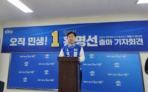 [ÃæÃ»ÇÖÀ̽´] Ȳ¸í¼± Àü ³í»ê½ÃÀåÀÌ Á¦22´ë ±¹È¸ÀÇ¿ø ÃѼ± ³í»ê¡¤°è·æ¡¤±Ý»ê Áö¿ª±¸ Ã⸶¸¦ °ø½Ä ¼±¾ðÇß´Ù.