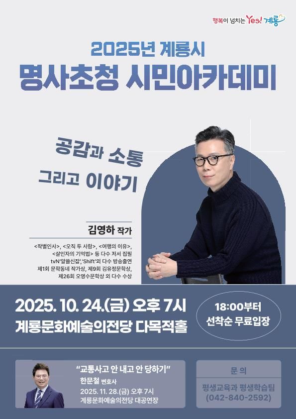 [ÃæÃ»ÇÖÀ̽´] °è·æ½Ã(½ÃÀå ÀÌÀÀ¿ì)´Â ¿À´Â 24ÀÏ ±è¿µÇÏ ÀÛ°¡¸¦ ÃÊÃ»ÇØ ¡®°ø°¨°ú ¼ÒÅë ±×¸®°í À̾߱⡯¶ó´Â ÁÖÁ¦·Î ¸í»çÃÊû ½Ã¹Î¾ÆÄ«µ¥¹Ì¸¦ °³ÃÖÇÑ´Ù°í ¹àÇû´Ù.