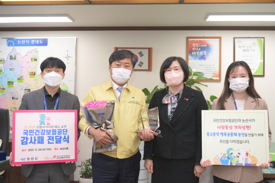 ±¹¹Î°Ç°º¸Çè°ø´ÜÀº ³í»ê½ÃÀÇ Àú¼ÒµæÁֹΠ°Ç°º¸Çè·á Áö¿øÀ» ºñ·ÔÇÑ ´Ùä·Î¿î ½Ã¹ÎÁ᫐ º¹Áö¼ºñ½º°¡ Áö¿ª»çȸ º¹Áö¹ßÀü¿¡ Å©°Ô ±â¿©Çϰí ÀÖÀ½À» ÀÎÁ¤, Ȳ¸í¼± ³í»ê½ÃÀå¿¡°Ô °¨»çÆÐ¸¦ ¼ö¿©ÇÑ´Ù°í ÀüÇß´Ù.