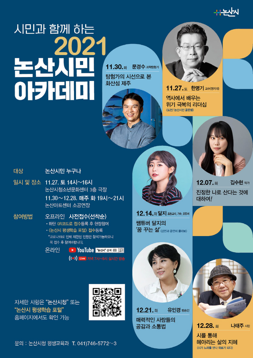 ÇÑÆí, 2021³â ³í»ê½Ã¹Î¾ÆÄ«µ¥¹Ì´Â 12¿ù±îÁö ¸ÅÁÖ È¿äÀÏ Àú³á 7½Ã, ÃÑ 6ȸ¿¡ °ÉÃÄ ½Ã¹Î°ú ÇÔ²²ÇÏ´Â ¼öÁØ ³ôÀº Àι®ÇÐ °Á¸¦ Á¦°øÇÒ °èȹÀÌ¸ç ¡â¹®°æ¼ö °úÇÐŽÇè°¡(11.30) ¡â±è¼öÇö ÀÛ°¡(12.07) ¡â´ÞÁö À¯Æ©¹ö(12.14.) ¡âÀ¯ÀÎ°æ ¹æ¼ÛÀÎ(12.21.) ¡â³ªÅÂÁÖ ½ÃÀÎ(12.28.) µî °¢ ºÐ¾ß Àú¸íÀλçµéÀÇ ¸íǰ °¿¬ÀÌ À̾îÁø´Ù.