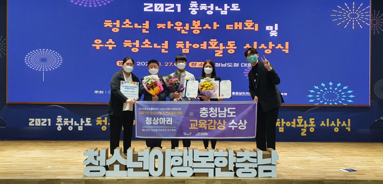 [ÃæÃ»ÇÖÀ̽´] Àç´Ü¹ýÀÎ ³í»ê½Ãû¼Ò³âÇູÀç´Ü(ÀÌ»çÀå Ȳ¸í¼±) ³í»ê½Ãû¼Ò³â¹®È­¼¾ÅÍ ¼Ò¼Ó ¡®³í»ê½Ãû¼Ò³â¿î¿µÀ§¿øÈ¸¡¯°¡ 2021³â ÃæÃ»³²µµ û¼Ò³âÂü¿©±â±¸ ¿¬°£È°µ¿ ¿ì¼ö»ç·Ê·Î ¼±Á¤µÇ¸ç ÃæÃ»³²µµ ±³À°°¨»óÀ» ¼ö»óÇÏ´Â ¿µ¿¹¸¦ ¾È¾Ò´Ù.