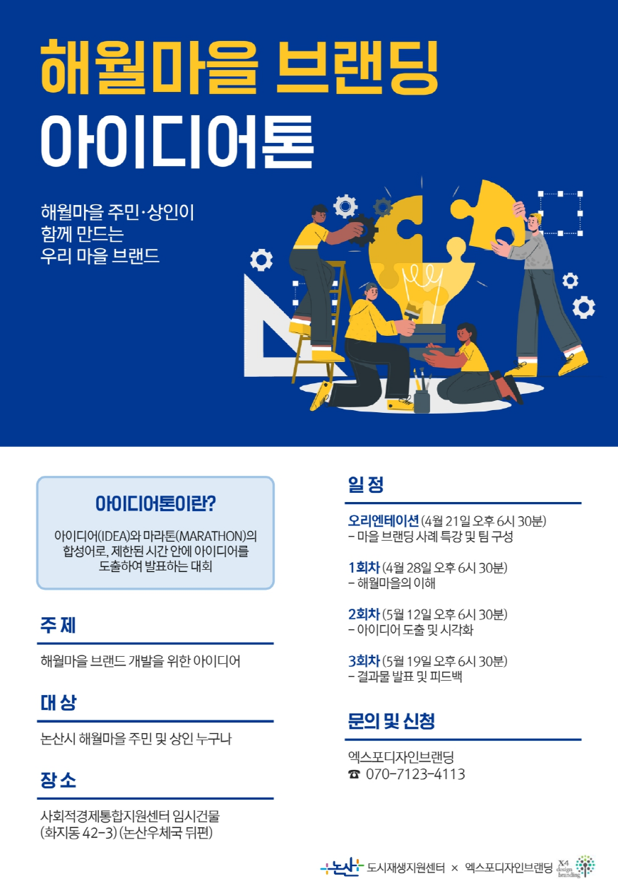 ¿öÅ©¼óÀº ¿À´Â 28ÀÏ ¿ÀÈÄ 6½Ã 30ºÐ ³í»ê ¿ìü±¹ Àα٠»çȸÀû°æÁ¦ÅëÇÕÁö¿ø¼¾ÅÍ(Áß¾Ó·Î 492¹ø±æ 37)¿¡¼ 1ȸÂ÷ ¾ÆÀ̵ð¾îÅæÀ» ½ÃÀÛÀ¸·Î 5¿ù 19ÀϱîÁö ÃÑ 3ȸ¿¡ °ÉÃÄ ÁøÇàÇÒ ¿¹Á¤ÀÌ´Ù.