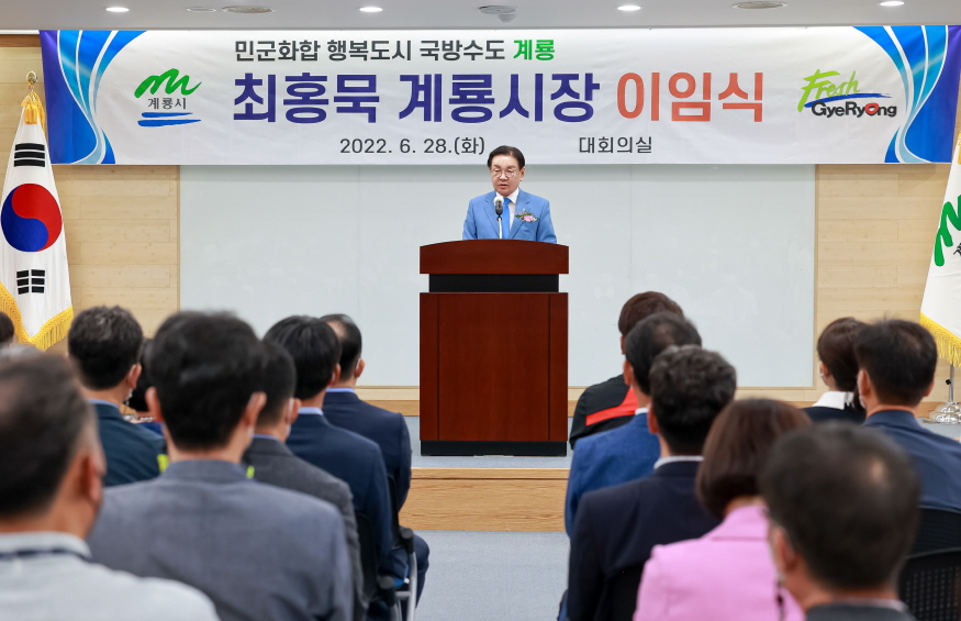[ÃæÃ»ÇÖÀ̽´] °è·æ½Ã´Â 28ÀÏ ¿ÀÈÄ 2½Ã ½Ãû ´ëȸÀǽǿ¡¼­ Á÷¿ø 100¿© ¸íÀÌ Âü¼®ÇÑ °¡¿î¿¡ ¹Î¼± 5±â ÃÖÈ«¹¬ °è·æ½ÃÀå ÀÌÀÓ½ÄÀ» °¡Á³´Ù.