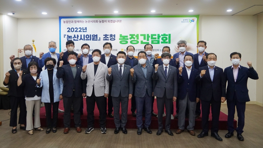 [ÃæÃ»ÇÖÀ̽´] ³í»ê½ÃÀÇȸ(ÀÇÀå ¼­¿ø)´Â 15ÀÏ ³óÇùÁß¾Óȸ ³í»ê½ÃÁöºÎ°¡ ÃÊûÇÑ °£´ãȸ¿¡ Âü¼®ÇÏ¿© ³ó¹ÎµéÀÇ °æÁ¦»ýȰÀ» ¹ßÀü½Ã۱â À§ÇÑ Çù·ÂÀ» µµ¸ðÇÏ´Â ÀÚ¸®¸¦ °¡Á³´Ù.
