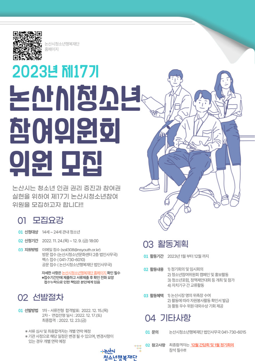 ³í»ê½Ã´Â ¿À´Â 12¿ù 9ÀϱîÁö 2023³â Á¦17±â û¼Ò³âÂü¿©À§¿øÈ¸¿¡ ÇÔ²²ÇÒ Ã»¼Ò³âÀ» ¸ðÁýÇÒ °èȹÀ¸·Î, °ü³»¿¡ °ÅÁÖÇÏ´Â 14¼¼ºÎÅÍ 24¼¼ ÀÌÇÏÀÇ Ã»¼Ò³âÀ» ´ë»óÀ¸·Î ¼­·ù ¹× ¸éÁ¢ ½É»ç¸¦ Ä¡¸¥´Ù.