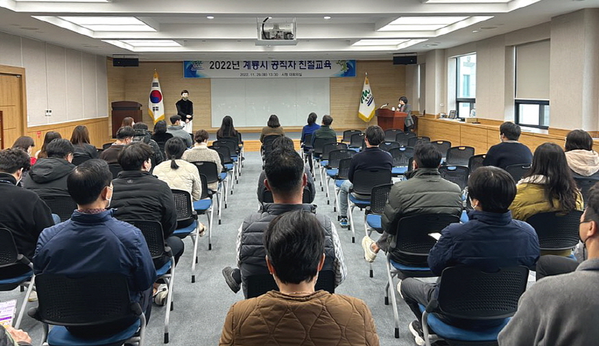 [ÃæÃ»ÇÖÀ̽´] °è·æ½Ã(½ÃÀå ÀÌÀÀ¿ì)´Â Áö³ 29ÀÏ ½Ãû ´ëȸÀǽǿ¡¼ ½Ã °øÁ÷ÀÚ 200¿© ¸íÀ» ´ë»óÀ¸·Î °øÁ÷ÀÚ Ä£Àý±³À°À» ½Ç½ÃÇß´Ù°í ÀüÇß´Ù.