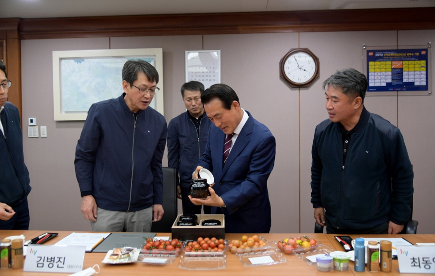 ¹é¼ºÇö ½ÃÀåÀº ¡°´ëÇѹα¹À» ´ëÇ¥ÇÏ´Â ½Äǰ ±â¾÷µéÀÌ ³í»êÀÇ »ý»ê¹°¿¡ ÁÖ¸ñÇϰí ÀÖ°í, ³í»ê ³ó¾÷ÀÇ °¡Ä¡¸¦ ÀÎÁ¤Çϰí ÀÖ´Ù¡±¸ç ¡°³ó¾÷ÀεéÀÌ ¼ÒµæÁõ´ë¸¦ ü°¨Çϰí À̸¦ ¹ÙÅÁÀ¸·Î ¾çÁúÀÇ »ý»êȯ°æÀ» °®Ãç°¡´Â ¼±¼øÈ¯ ü°è¸¦ ¸¸µé°Ú´Ù¡±°í ¸»Çß´Ù.