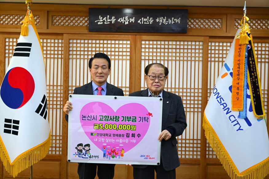 [ÃæÃ»ÇÖÀ̽´] °Ç¾ç´ëÇб³ÀÇ ¼³¸³ÀÚ °â ¸í¿¹ÃÑÀåÀÌÀÚ °Ç¾çÀÇ·áÀç´Ü ±è¾È°úº´¿øÀÇ ÀÌ»çÀåÀÎ ¸í°î ±èÈñ¼ö ¹Ú»ç°¡ Áö³ 30ÀÏ °íÇâ ³í»ê¿¡ ¡®°íÇâ»ç¶û±âºÎ±Ý¡¯ 500¸¸ ¿øÀ» ÀüÇß´Ù.