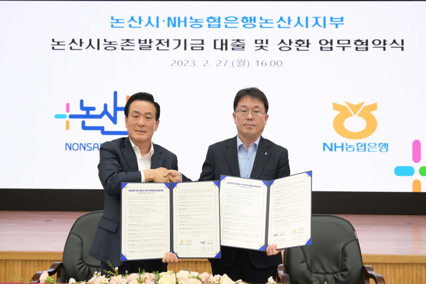 ³í»ê½Ã¿Í NH³óÇùÀºÇà ³í»ê½ÃÁöºÎ(ÁöºÎÀå ±èµ¿Áø, ÀÌÇÏ ³óÇù)´Â Áö³ 27ÀÏ ½Ãû ȸÀǽǿ¡¼ ¡®³í»ê½Ã³óÃ̹ßÀü±â±Ý ´ëÃâ ¹× »óȯ ¾÷¹«Çù¾à¡¯À» ü°áÇß´Ù.