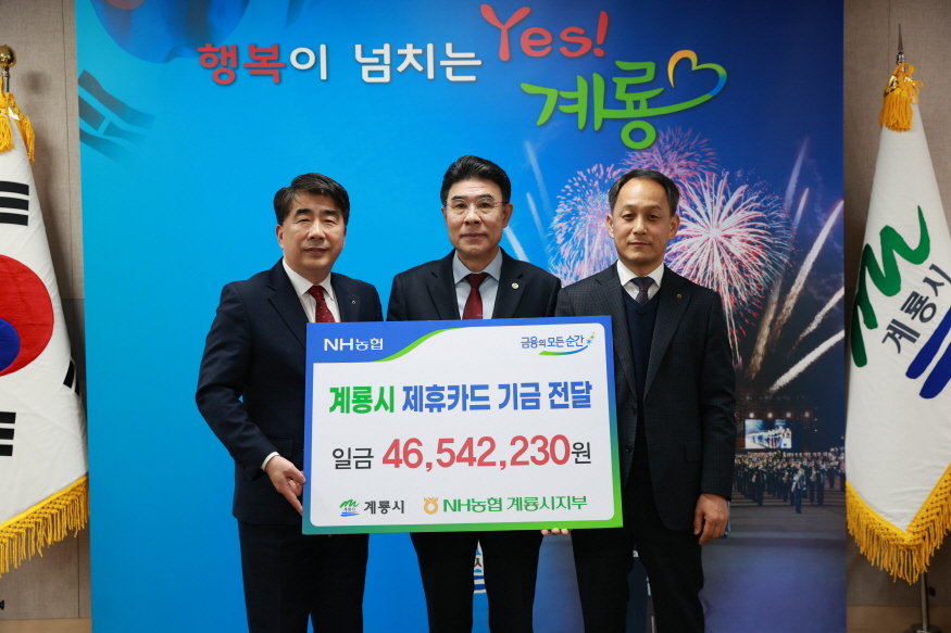 [ÃæÃ»ÇÖÀ̽´] °è·æ½Ã(½ÃÀå ÀÌÀÀ¿ì)´Â Áö³ 9ÀÏ NH³óÇùÀºÇà Ãæ³²º»ºÎ(º»ºÎÀå ¹é³²¼º), °è·æ½Ã ÁöºÎ(ÁöºÎÀå ±èÁ¾¼ö)¿Í ¡®NH Á¦ÈÞÄ«µå ±â±Ý Àü´Þ½Ä¡¯À» °¡Á³´Ù°í ¹àÇû´Ù.