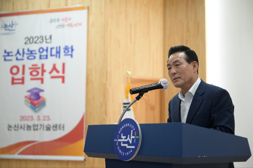 ³í»ê½Ã(½ÃÀå ¹é¼ºÇö)°¡ 23ÀÏ ¿ÀÈÄ 2½Ã ³í»ê½Ã³ó¾÷±â¼ú¼¾ÅÍ ´ë°´ç¿¡¼ ¡®2023³â ³í»ê³ó¾÷´ëÇС¯ ÀÔÇнÄÀ» °³ÃÖÇß´Ù. ÀÔÇнĿ¡´Â 90¸íÀÇ ÇлýÀ» ºñ·ÔÇØ ³»ºó°ú °¡Á· µîÀÌ Âü¼®ÇØ 2023³â °úÁ¤ÀÇ ½ÃÀÛÀ» ÇÔ²² ±â³äÇß´Ù.
