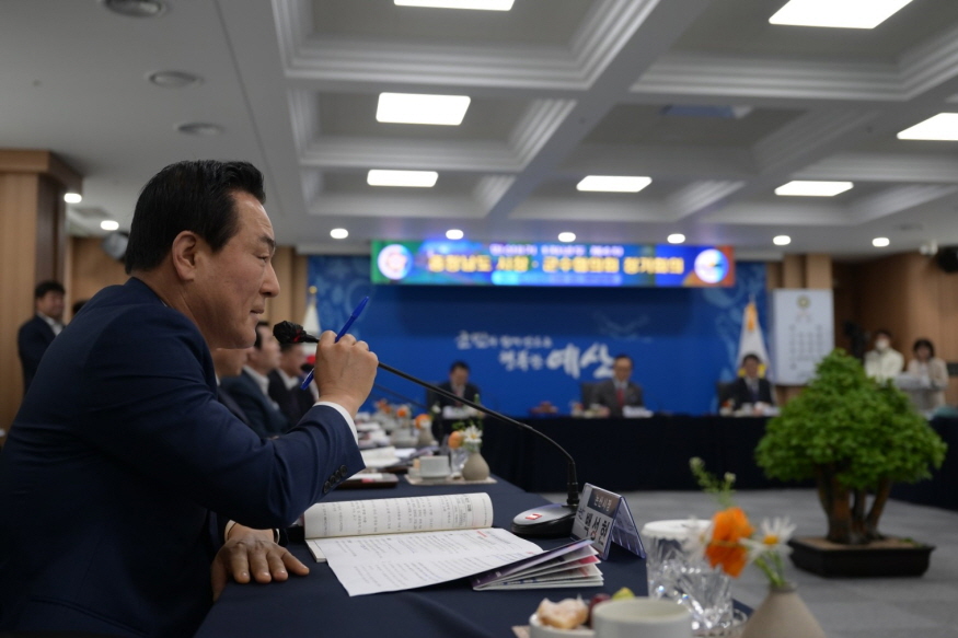 [ÃæÃ»ÇÖÀ̽´] ¹é¼ºÇö ³í»ê½ÃÀåÀÌ 26ÀÏ ¿ÀÀü ¿¹»ê±ºÃ»¿¡¼ ¿¸° ¡®¹Î¼± 8±â 1Â÷³âµµ Á¦4Â÷ Ãæ³²½ÃÀ屺¼öÇùÀÇȸ¡¯¿¡ Âü¼®ÇØ ÃæÃ»³²µµ ¼¤ý³²ºÎ±Ç ±ÕÇü¹ßÀüÀ» À§ÇØ ½ÇÈ¿Àû Àü·«ÀÌ ¿ä±¸µÊÀ» °Á¶Çß´Ù.