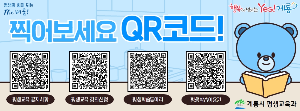 ½Ã´Â ÀÌ·¯ÇÑ ¹®Á¦Á¡À» ÇØ°áÇÏ°í ¾ðÁ¦ ¾îµð¼³ª ÇÊ¿äÇÑ Æò»ýÇнÀ °ü·Ã Á¤º¸¸¦ ¿¶÷ÇÒ ¼ö ÀÖµµ·Ï °Á ȫº¸ ¹× ÇнÀÀÚ ¸ðÁýÀ» ¾Ë¸®´Â Çö¼ö¸·°ú ¹è³Ê, È«º¸Àü´Ü µî¿¡ QRÄڵ带 »ðÀÔŰ·Î Çß´Ù°í ¾Ë·È´Ù.