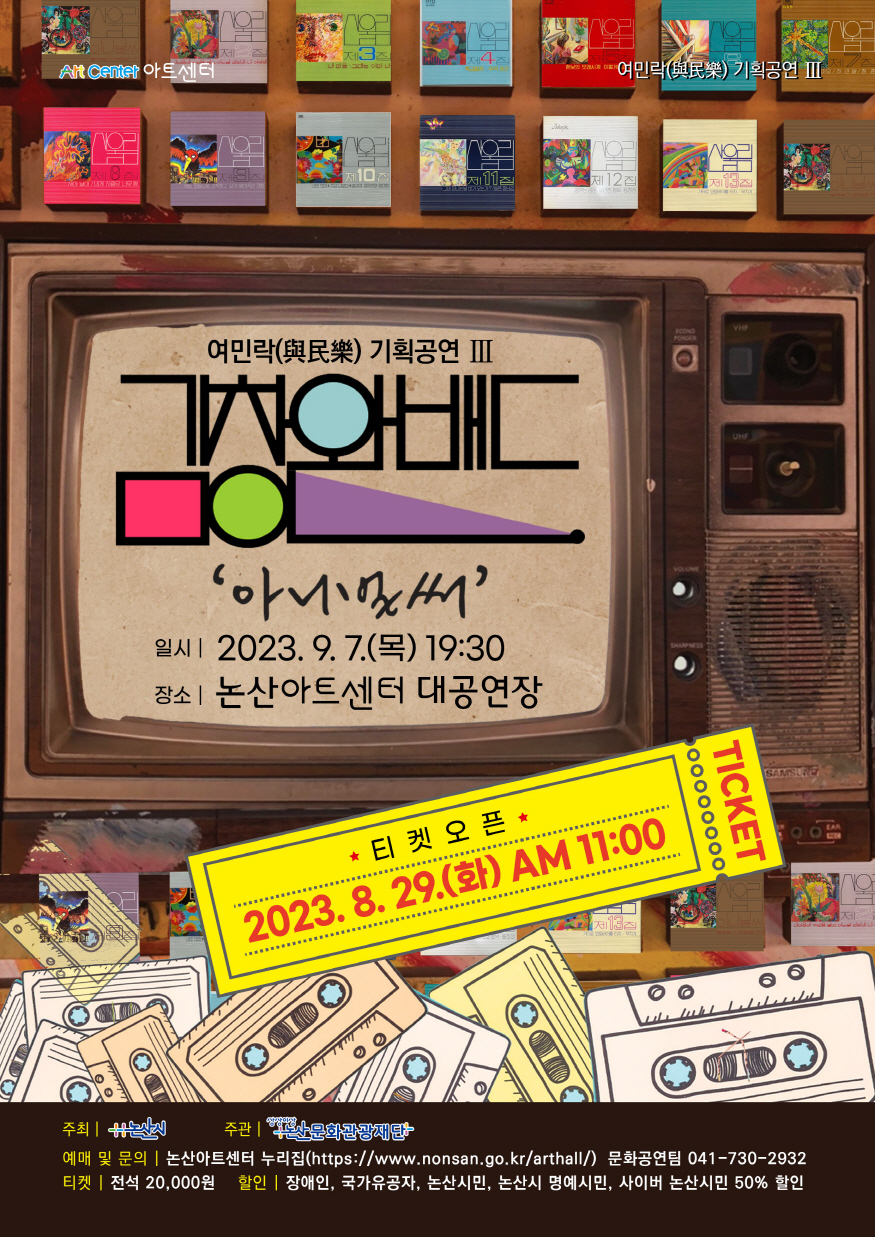 ÇÑÆí, <¾Æ´Ï ¹ú½á> °ø¿¬ÀÇ °ü¶÷·á´Â Àü¼® 2¸¸ ¿øÀÌ¸ç ³í»ê½Ã¹ÎÀ̳ª »çÀ̹ö³í»ê½Ã¹ÎÀÇ °æ¿ì 50% ÇÒÀÎµÈ °¡°ÝÀ¸·Î ¿¹¸ÅÇÒ ¼ö ÀÖ´Ù. ¿¹¸Å´Â ³í»ê¾ÆÆ®¼¾ÅÍ È¨ÆäÀÌÁö(https://www.nonsan.go.kr/arthall/)¿¡¼­ ÇÒ ¼ö ÀÖ´Ù.