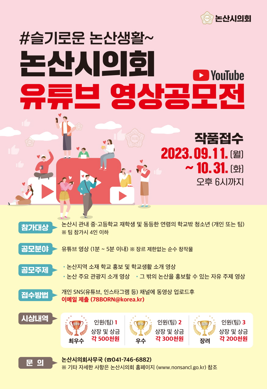 [ÃæÃ»ÇÖÀ̽´] ³í»ê½ÃÀÇȸ(ÀÇÀå ¼­¿ø)´Â °ü³» Áß¡¤°íµîÇлýÀ» ´ë»óÀ¸·Î ¡º³í»ê½ÃÀÇȸ À¯Æ©ºê ¿µ»ó °ø¸ðÀü¡»À» °³ÃÖÇÑ´Ù.