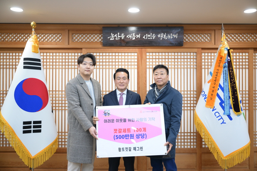 ³í»ê½Ã(½ÃÀå ¹é¼ºÇö)´Â Áö³­ 27ÀÏ È²ÅäÁ£°¥(´ëÇ¥ ¾ö°Ç½Ä)ÀÌ 500¸¸ ¿ø »ó´çÀÇ Á£°¥¼¼Æ® 100°³¸¦, »ç´Ü¹ýÀÎ Çѱ¹¾çºÀÇùȸ ³í»ê½ÃÁöºÎ(ÁöºÎÀå ±èÈï½Ä)¿¡¼­´Â ȸ¿øµéÀÌ ½Ê½ÃÀÏ¹Ý ¸ðÀº ¼º±Ý 200¸¸ ¿øÀ» ½Ã¿¡ ±âÁõÇß´Ù°í 28ÀÏ ¹àÇû´Ù.