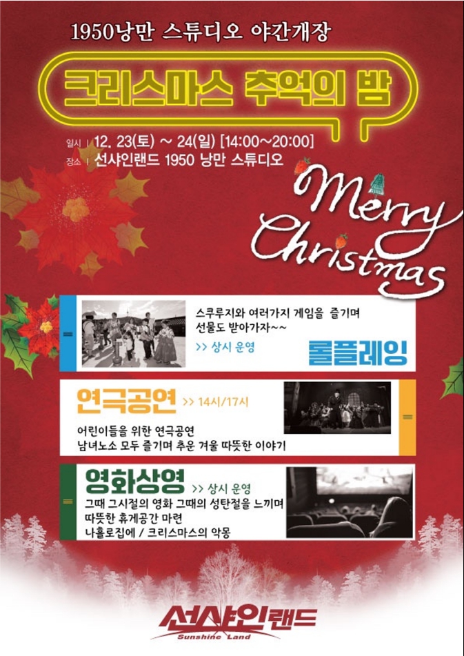 12¿ù 23ÀÏ, 24ÀÏ ¾çÀϰ£ ¼±»þÀη£µå 1950½ºÆ©µð¿À ¾ß°£ °³Àå -