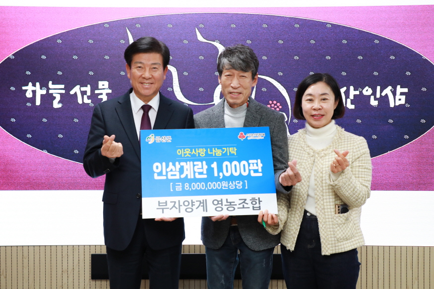 [ÃæÃ»ÇÖÀ̽´] ºÎÀÚ¾ç°è¿µ³óÁ¶ÇÕ(´ëÇ¥ ±è¿µÃ¶)Àº 11¿ù 29ÀÏ ±Ý»ê±ºÃ»À» ¹æ¹®ÇØ ¾î·Á¿î ÀÌ¿ôµé¿¡°Ô Àü´ÞÇØ ´Þ¶ó¸ç 11³â° À̾î¿Â »ç¶ûÀÇ ±âºÎ·Î 800¸¸ ¿ø »ó´ç Àλï°è¶õ 1000ÆÇÀ» ±âŹÇß´Ù.