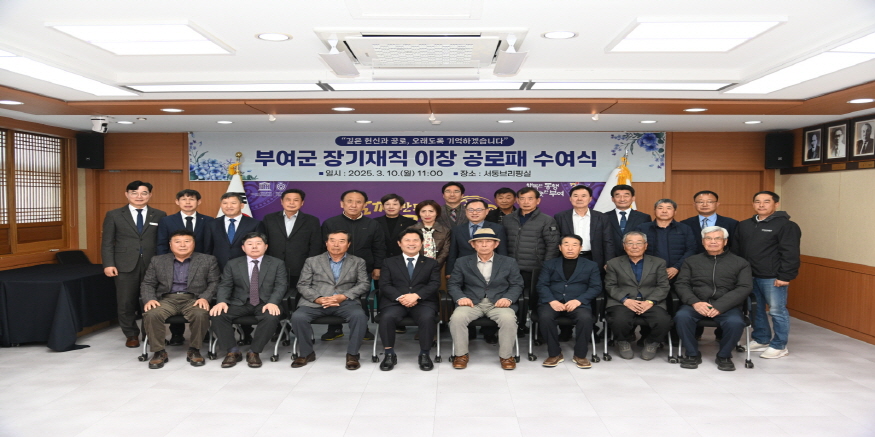 À̹ø Çà»ç´Â ¡¸ºÎ¿©±º ÀÌÀåÀÇ ÀÓ¹«¿Í Áö¿ø¿¡ °üÇÑ Á¶·Ê¡¹¿¡ µû¶ó 10³â ÀÌ»ó ÀçÁ÷ÇÑ ÈÄ ÅðÀÓÇÏ´Â ÀÌÀå¿¡°Ô °ø·ÎÆÐ¸¦ ¼ö¿©ÇÒ ¼ö ÀÖµµ·Ï ÇÑ ±ÔÁ¤¿¡ µû¶ó ¸¶·ÃµÆ´Ù. Àå±â°³Á÷ÇÑ ÀÌÀåµéÀÇ Çå½Å°ú ³ë·ÂÀ» ±â³äÇϰí, Áö¿ª»çȸ ¹ßÀü¿¡ ±â¿©ÇÑ °ø·Î¸¦ ¿¹¿ìÇÏ´Â ¶æ±íÀº ÀÚ¸®¿´´Ù.