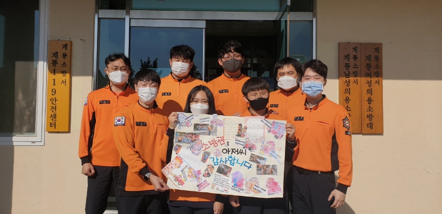 [ÃæÃ»ÇÖÀ̽´] °è·æ¼Ò¹æ¼­(¼­Àå ÃÖÀåÀÏ) Áö³­ 15ÀÏ ÅäÅäºô ¾î¸°ÀÌÁý ¿ø»ýµéÀÌ °è·æ119¾ÈÀü¼¾Å͸¦ ¹æ¹®ÇØ °¨»çÀÇ ¼ÕÆíÁö¸¦ Àü´ÞÇß´Ù°í ¹àÇû´Ù.