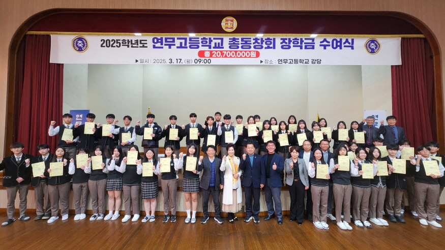 [ÃæÃ»ÇÖÀ̽´] ¿¬¹«°íµîÇб³(±³Àå ¹Ú¿ëÁø)´Â 2025³â 3¿ù 17ÀÏ(¿ù) º»±³ üÀ°°ü¿¡¼­ ½ÅÀÔ»ý, ÀçÇлý, Á¹¾÷»ý °£ÀÇ ´ë¸é½ÄÀ» Æ÷ÇÔÇÑ ÀåÇÐ±Ý Àü´Þ½ÄÀ» ¼ºÈ²¸®¿¡ ¸¶ÃÆ´Ù°í ¹àÇû´Ù.