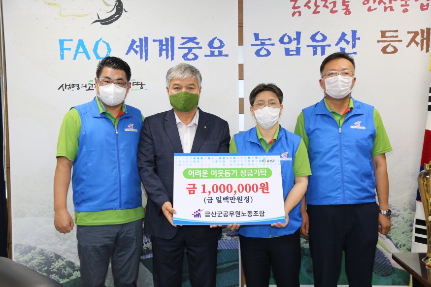 ÇÑÆí, ±Ý»ê±º°ø¹«¿ø³ëÁ¶¿¡¼´Â Äڷγª19 °ü·Ã ¾î·Á¿îÀÌ¿ô ¼º±Ý ±âŹÀÌÈÄ ¿ÃÇØ¿¡¸¸ ¹ú½á µÎ ¹øÂ°ÀÌ´Ù. À̹ø ±âŹ ¼º±ÝÀº Ãæ³²µµ°øµ¿¸ð±Ýȸ¸¦ ÅëÇØ ±Ý»ê±º ¼öÇØÇÇÇØ°¡±¸¿¡ »ç¿ë µÉ ¿¹Á¤ÀÌ´Ù.