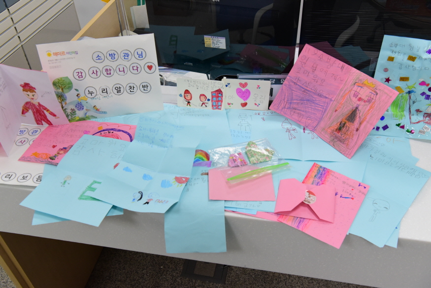 ÆíÁö¿¡´Â ¾î¸°À̵éÀÌ °í»ç¸® °°Àº ¼ÕÀ¸·Î »ß¶Ô»©¶Ô ±Í¿±°Ô ½á³»·Á°£ ±Û·Î ¡°¼Ò¹æ°ü´Ôµé ºÒ ²¨Áּż­ °¨»çÇÕ´Ï´Ù¡±, ¡°Ä¿¼­ ¼Ò¹æ°üÀÌ µÇ°í ½Í¾î¿ä¡±, ¡°¸ÚÀÖ¾î¿ä »ç¶ûÇÕ´Ï´Ù¡±µî °í»ç¸®¼ÕÀ¸·Î ¼Õ¼ö ¾´ °¨»çÀÇ ±ÛÀÌ °¡µæÇß´Ù.