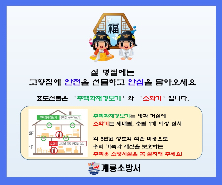 [ÃæÃ»ÇÖÀ̽´] °è·æ¼Ò¹æ¼­(¼­Àå ±è°æÃ¶)´Â ´Ù°¡¿À´Â ¼³ ¸íÀýÀ» ¾ÕµÎ°í °¡Á¤¿¡ ¼ÒÈ­±â ¹× ´Üµ¶°æº¸Çü°¨Áö±â¸¦ ¼±¹°ÇØ ¼³Ä¡ÇÒ °ÍÀ» Á¦¾ÈÇß´Ù.
