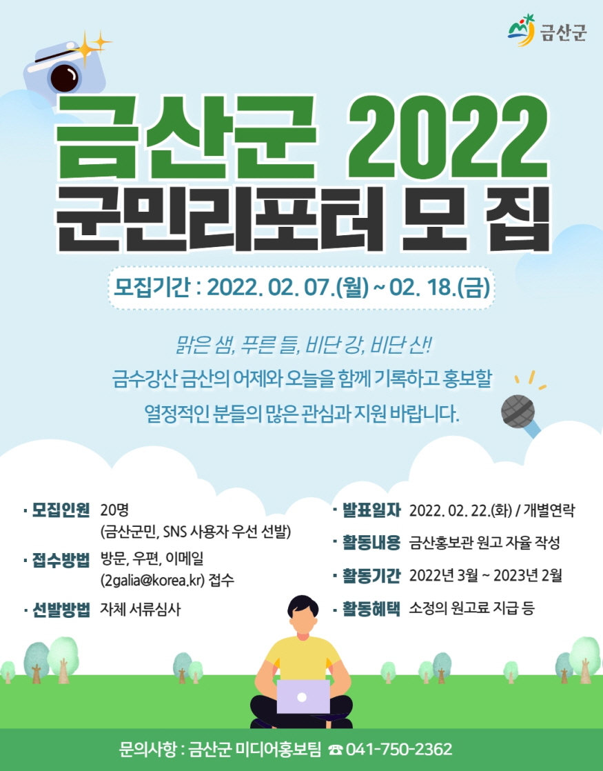 [ÃæÃ»ÇÖÀ̽´] ±Ý»ê±ºÀÌ SNS ¼­Æ÷ÅÍÁî·Î Ȱµ¿ÇÒ ±º¹Î¸®Æ÷Å͸¦ ¸ðÁýÇÑ´Ù. ±ºÀº 2022³â ÇÑ ÇØ µ¿¾È ±ºÁ¤À» È«º¸ÇÏ°í ¡®±Ý»êÀÇ ¿À´Ã¡¯À» ±â·ÏÇÒ ±º¹Î¸®Æ÷Å͸¦ 18ÀϱîÁö ¸ðÁýÇÑ´Ù°í 8ÀÏ ¹àÇû´Ù.