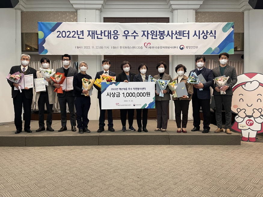 [ÃæÃ»ÇÖÀ̽´] ºÎ¿©±ºÀÚ¿øºÀ»ç¼¾ÅͰ¡ ¡®2022³â Àç³­´ëÀÀ ÀÚ¿øºÀ»çȰµ¿ ÃßÁø ¿ì¼ö¼¾ÅÍ¡¯·Î ¼±Á¤µÅ Áö³­ 22ÀÏ Çѱ¹Áß¾ÓÀÚ¿øºÀ»ç¼¾ÅÍÀå ǥâÀ» ¹Þ¾Ò´Ù.