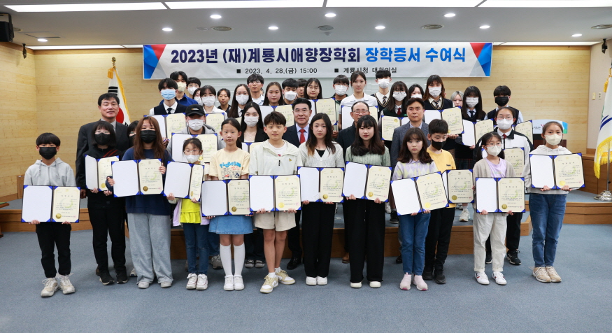 [ÃæÃ»ÇÖÀ̽´] (Àç)°è·æ½Ã¾ÖÇâÀåÇÐȸ(ÀÌ»çÀå ÀÌÀÀ¿ì)´Â 28ÀÏ ½Ãû ´ëȸÀǽǿ¡¼­ ÀåÇлý°ú Çкθð µî 70¿© ¸íÀÌ Âü¼®ÇÑ °¡¿îµ¥ ¡®2023Çг⵵ ¾ÖÇâÀåÇÐȸ ÀåÇÐÁõ¼­ ¼ö¿©½Ä¡¯À» °³ÃÖÇß´Ù°í ¹àÇû´Ù.
