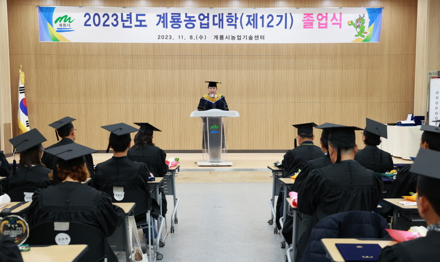 [ÃæÃ»ÇÖÀ̽´] °è·æ½Ã(½ÃÀå ÀÌÀÀ¿ì)´Â Áö³­ 8ÀÏ ³ó¾÷±â¼ú¼¾ÅÍ(ÀÌÇÏ ¼¾ÅÍ)¿¡¼­ ¡®Á¦12±â °è·Õ³ó¾÷´ëÇÐ µµ½Ã³ó¾÷Çаú¡¯ Á¹¾÷½ÄÀ» °³ÃÖÇß´Ù