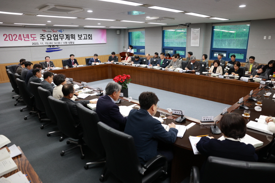 [ÃæÃ»ÇÖÀ̽´] °è·æ½Ã(½ÃÀå ÀÌÀÀ¿ì)´Â Áö³­ 15ÀÏ ½Ãû »óȲ½Ç¿¡¼­ ÀÌÀÀ¿ì ½ÃÀåÀ» ºñ·ÔÇÑ °ü°è °ø¹«¿ø µî 50¿© ¸íÀÌ Âü¼®ÇÑ °¡¿îµ¥ 2024³â ½ÃÁ¤¿î¿µ¹æÇâ ¼³Á¤°ú ÁÖ¿ä »ç¾÷°èȹ ¼ö¸³À» À§ÇÑ ¡®2024³â ÁÖ¿ä¾÷¹«°èȹ º¸°íȸ¡¯¸¦ °³ÃÖÇß´Ù°í ¹àÇû´Ù.
