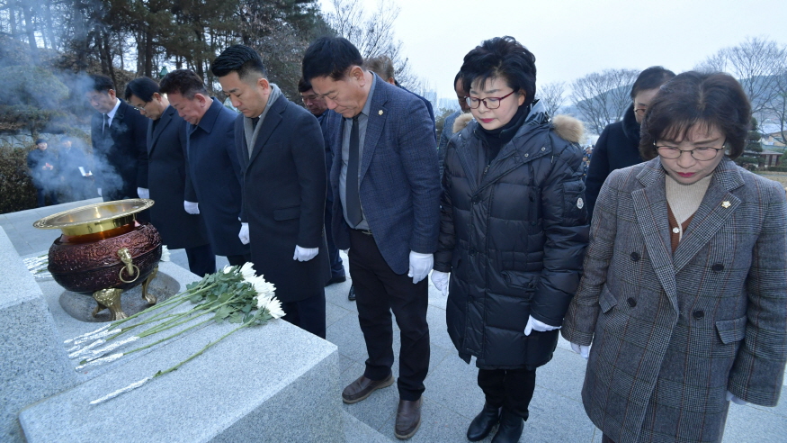 [ÃæÃ»ÇÖÀ̽´] ³í»ê½ÃÀÇȸ(ÀÇÀå ¼¿ø)´Â »õÇØ ù °ø½Ä ÀÏÁ¤À¸·Î 2ÀÏ ¿ÀÀü Ãæ·ÉžÀ» ¹æ¹®, ¼ø±¹¼±¿°ú È£±¹¿µ·ÉÀÇ Èñ»ýÀ» Ã߸ðÇϸç Âü¹è¸¦ ½Ç½ÃÇÏ¿´À¸¸ç ÀÌ¾î ½ÃÀÇȸ 1Ãþ ȸÀǽǿ¡¼ ¡®»õÇØ Àλç½Ä¡¯À» °³ÃÖÇß´Ù.