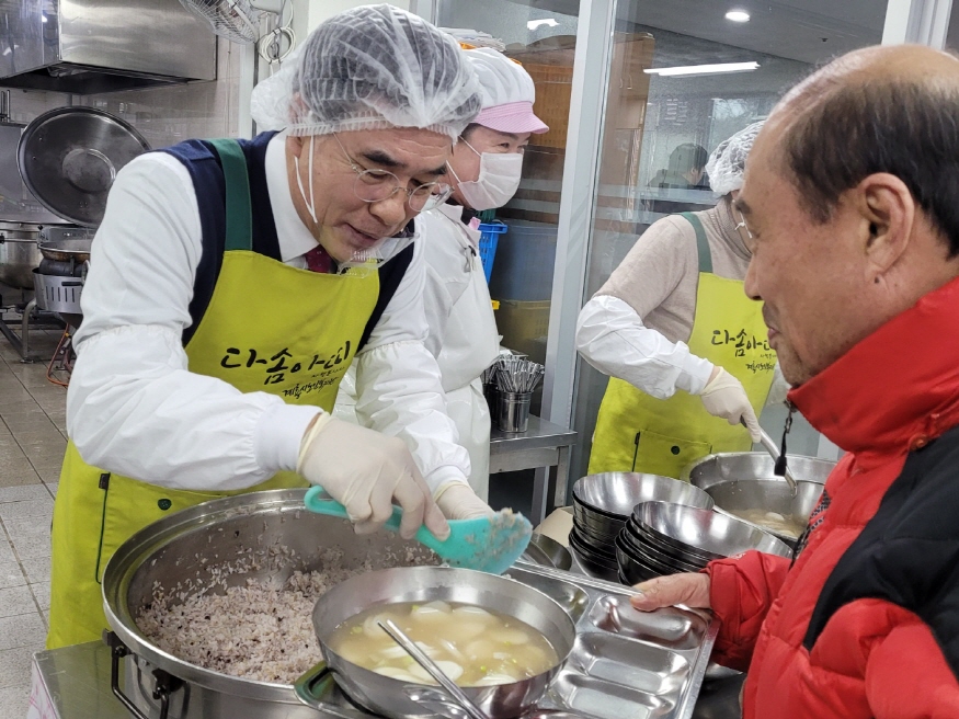 [ÃæÃ»ÇÖÀ̽´] ÀÌÀÀ¿ì °è·æ½ÃÀåÀº 2ÀÏ °è·æ½Ã ³ëÀκ¹Áö°üÀ» ã¾Æ ¾î¸£½Å¿¡°Ô ¶±±¹ ¹è½ÄºÀ»ç¸¦ ½Ç½ÃÇÏ°í º¹Áö°ü Á÷¿ø°ú ºÀ»çÀÚ¸¦ °Ý·ÁÇß´Ù. ÀÌÀÀ¿ì ½ÃÀåÀº ¡°Èñ¸ÁÂù »õÇØ¸¦ ¸Â¾Æ ¾î¸£½Å ¸ðµÎ °Ç°­ÇÏ½Ã°í ¶æÇϽŠ¹Ù¸¦ ¸ðµÎ ÀÌ·ç½Ã±æ ¹Ù¶õ´Ù¡±¸ç, ¡°¾î¸£½ÅµéÀÌ ºÒÆíÇÔ ¾øÀÌ ³ë³âÀ» º¸³»½Ç ¼ö ÀÖµµ·Ï ³ëÀκ¹Áö ÁõÁø¿¡ ÃÖ¼±À» ´ÙÇϰڴ١±°í ¸»Çß´Ù.