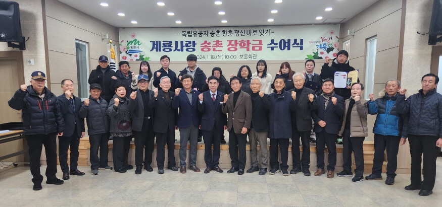µ¶¸³¿îµ¿°¡ ¼ÛÃÌ ÇÑÈÆ ¼±»ýÀÇ Á¤½Å°ú ¾÷ÀûÀ» ±â¸®°í °è·æ½Ã Áö¿ªÀÎÀç ¾ç¼ºÀ» À§ÇØ ¿­¸° À̹ø ÀåÇÐ±Ý ¼ö¿©½ÄÀº ÀÌÀÀ¿ì ½ÃÀå°ú ÇÑ»óºó ¼ÛÃÌÇÑÈÆ±â³ä»ç¾÷ȸÀå, ÀÌÁ¤Çö º¸ÈÆ´ÜüÇùÀÇȸÀåÀ» ºñ·ÔÇÑ °¢ º¸ÈÆ´ÜüÀå, ÀåÇлý 10¸í µî 30¿© ¸íÀÌ Âü¼®ÇÑ °¡¿îµ¥ ¿­·È´Ù.