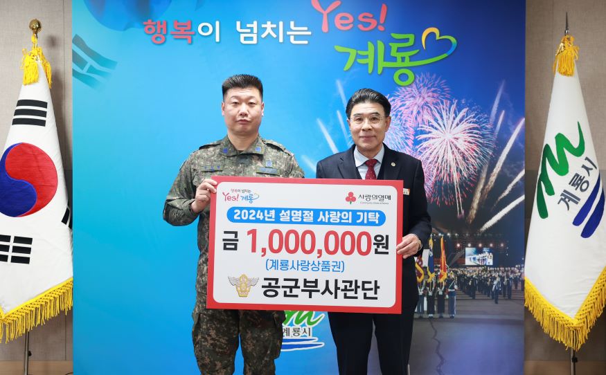 [ÃæÃ»ÇÖÀ̽´] °è·æ½Ã(½ÃÀå ÀÌÀÀ¿ì)´Â Áö³­ 8ÀÏ °ø±ººÎ»ç°ü´Ü(ÁÖÀοø»ç À±¼º·Ä)¿¡¼­¼³¸ÂÀÌ ÀÌ¿ôµ½±â¸¦ À§ÇØ °è·æ»ç¶û»óǰ±Ç 100¸¸¿øÀ» ±âÅ¹ÇØ ¿Ô´Ù°í ¹àÇû´Ù.