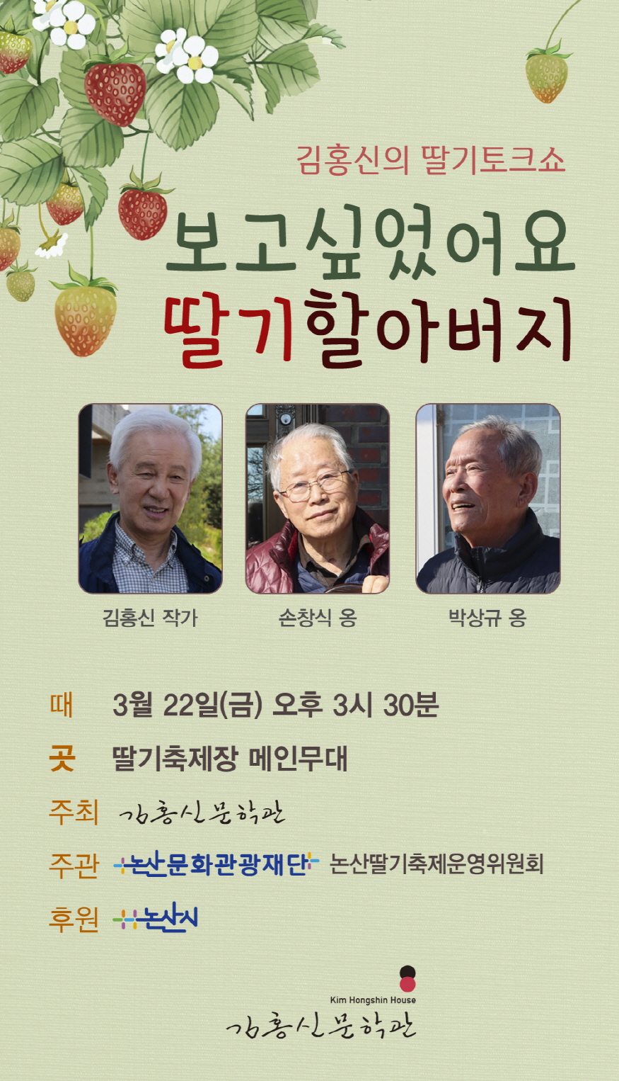 µÎ ´ëºÎ°¡ 22ÀÏ ¿ÀÈÄ 3:30 ³í»êµþ±âÃàÁ¦ ¹«´ë¿¡ ¿À¸¥´Ù. ³í»êµþ±âÃàÁ¦ °³¸·½Ä¿¡ ¾Õ¼­ ¸ÞÀι«´ë¿¡¼­ ÆîÃÄÁö´Â <±èÈ«½ÅÀÇ µþ±âÅäÅ©¼î>¿¡ Ã⿬ÇÑ´Ù. ºÎºÎ°¡ ÇÔ²² ¿Ã¶ó ³í»ê Ãâ½ÅÀÇ ±¹¹ÎÀÛ°¡ ±èÈ«½Å ¼Ò¼³°¡¿Í 1½Ã°£ µ¿¾È ȯ´ãÀ» ³ª´«´Ù. ÇØ¹æ ÀüÈÄÀÇ µþ±â À̾߱⿡¼­ºÎÅÍ 60³â´ë ÃÊâ±â ½ÇÆÐ¸¦ °ÅµìÇϸ鼭µµ 7Àü8±âÇÑ ¼º°ø»ç·Ê°¡ ³í»êµþ±â»ç·Î ±â·ÏµÉ ¿¹Á¤ÀÌ´Ù.