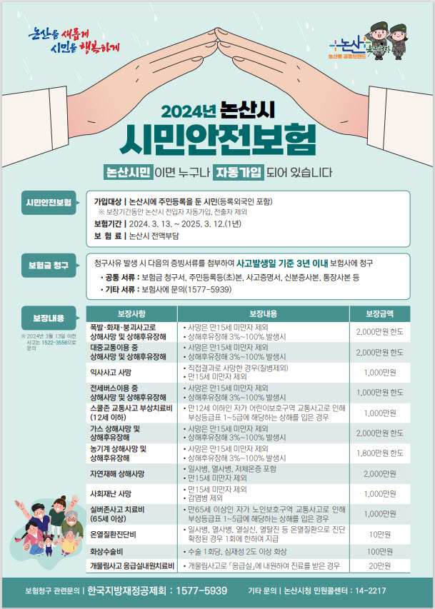 [ÃæÃ»ÇÖÀ̽´] ³í»ê½Ã(½ÃÀå ¹é¼ºÇö)´Â ³í»ê½Ã¹ÎÀ̸é ÀÚµ¿À¸·Î °¡ÀԵǴ µ¿½Ã¿¡ º¸Çè·á¸¦ ½Ã¿¡¼­ Àü¾× ºÎ´ãÇÏ´Â ½Ã¹Î¾ÈÀüº¸ÇèÀ» ¿î¿µÇÑ´Ù°í ¹àÇû´Ù.