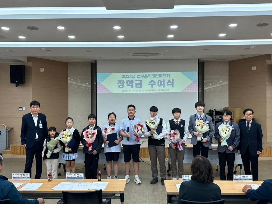 [ÃæÃ»ÇÖÀ̽´] ³í»ê½Ã(½ÃÀå ¹é¼ºÇö)´Â ¿¬¹«À¾ÀÌÀå´ÜÇùÀÇȸ(ȸÀå ¹ÚÁ¾»ó)°¡ Áö³­ 17ÀÏ ¿¬¹« ³óÇù Çϳª·Î¸¶Æ® 2Ãþ ȸÀǽǿ¡¼­ ¿¬¹«À¾ ¼ÒÀç ÃÊ¡¤Áß¡¤°íµîÇб³ ÀçÇлý¿¡°Ô ÀåÇбÝÀ» Àü´ÞÇß´Ù°í ¹àÇû´Ù.
