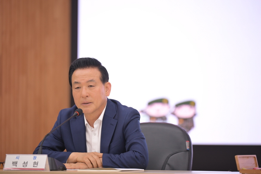 [ÃæÃ»ÇÖÀ̽´] ³í»ê½Ã(½ÃÀå ¹é¼ºÇö)°¡ 13ÀÏ ¿ÀÀü û³» ȸÀǽǿ¡¼­ À¾¸éµ¿ÀåÀ» Æ÷ÇÔÇÑ ½Ã °£ºÎ 70¿© ¸íÀÌ ¸ðÀÎ °¡¿îµ¥ ¡®5¿ù È®´ë°£ºÎȸÀÇ¡¯¸¦ °³ÃÖÇß´Ù.