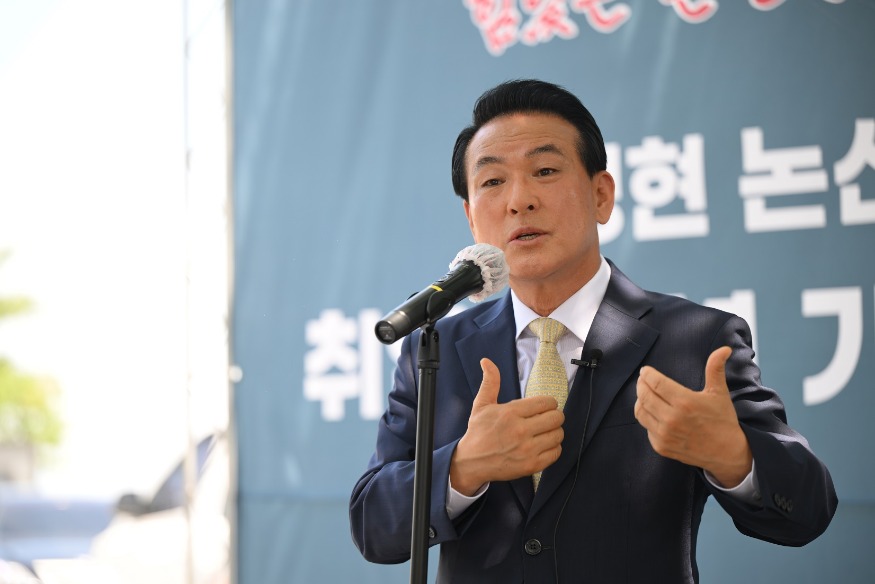 [ÃæÃ»ÇÖÀ̽´] ³í»ê½Ã(½ÃÀå ¹é¼ºÇö)°¡ 26ÀÏ ¿ÀÀü žÁ¤È£ ¼ö¹®°ø¿ø¿¡¼­¡®¹Î¼±8±â 2Áֳ⠾ð·ÐÀΰúÀÇ °£´ãȸ¡¯(ÀÌÇÏ °£´ãȸ)¸¦ °³ÃÖÇß´Ù