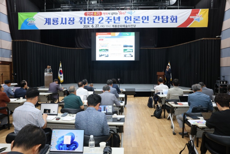 [ÃæÃ»ÇÖÀ̽´] ÀÌÀÀ¿ì °è·æ½ÃÀåÀÌ 27ÀÏ °è·æ¹®È­¿¹¼úÀÇÀü´ç¿¡¼­ ÃëÀÓ 2Áֳ⠱âÀÚ °£´ãȸ¸¦ ¿­°í ¹Î¼±8±â 2Â÷³âµµ ½ÃÁ¤ ÁÖ¿ä ¼º°ú ¹× ÇâÈÄ ½ÃÁ¤ ¿î¿µ ¹æÇâ¿¡ ´ëÇØ ¹àÇû´Ù.
