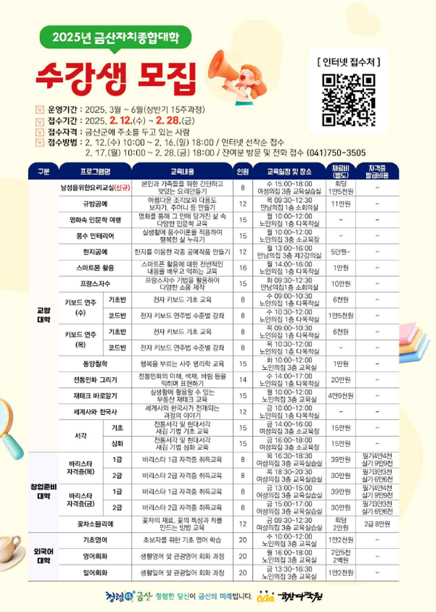 [ÃæÃ»ÇÖÀ̽´] ±Ý»ê±º, 2025³â ±Ý»êÀÚÄ¡Á¾ÇÕ´ëÇÐ ¼ö°­»ý ¸ðÁý±Ý»ê±º, 2025³â ±Ý»êÀÚÄ¡Á¾ÇÕ´ëÇÐ ¼ö°­»ý ¸ðÁý±³¾ç, â¾÷ Áغñ, ¿Ü±¹¾î µî 3°³ ´ëÇÐ 25°³ °­Á ¿î¿µ