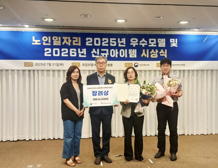 [ÃæÃ»ÇÖÀ̽´=ÀÌÈ­Áø ±âÀÚ] °è·æ½Ã´Ï¾îŬ·´(°üÀå À¯ÀÎÈ­)ÀÌ º¸°Çº¹ÁöºÎ°¡ ÁÖ°üÇÑ ¡®2026³â ½Å±Ô ³ëÀÎÀÏÀÚ¸® °³¹ß ¾ÆÀÌÅÛ °ø¸ð¡¯¿¡¼­ ¡¸½Ã´Ï¾î ¹Ý·Á½Ä¹° ³ì»ö ¸àÅ䡹 »ç¾÷À¸·Î Àå·Á»ó(Çѱ¹³ëÀÎÀη°³¹ß¿øÀå»ó)À» ¼ö»óÇß´Ù.