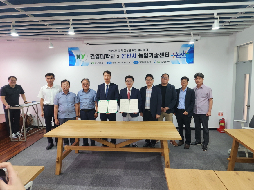 [ÃæÃ»ÇÖÀ̽´=ÀÌÈ­Áø ±âÀÚ] ³í»ê½Ã³ó¾÷±â¼ú¼¾ÅÍ¿Í °Ç¾ç´ëÇб³´Â 8¿ù 5ÀÏ °Ç¾ç´ëÇб³ ±Û·ÎÄÃÄ·ÆÛ½º ½º¸¶Æ®ÆÊÇкΠȸÀǽǿ¡¼­ ¡®K-½º¸¶Æ®ÆÊ Çù·Â ÇÁ·ÎÁ§Æ®¡¯ ¾÷¹«Çù¾àÀ» ü°áÇϰí, »ê¡¤ÇÐ ¿¬°è ±â¹ÝÀÇ ½º¸¶Æ®³ó¾÷ ½Ç½À¡¤±³À°¡¤Ã¼Ç衤¿¬±¸ Ç÷§Æû ¿î¿µ¿¡ º»°Ý µ¹ÀÔÇÑ´Ù°í ¹àÇû´Ù.