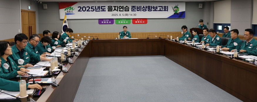 [ÃæÃ»ÇÖÀ̽´=ÀÌÈ­Áø ±âÀÚ] °è·æ½Ã(½ÃÀå ÀÌÀÀ¿ì)´Â ¿À´Â18ÀϺÎÅÍ 21ÀϱîÁö 4Àϰ£ ½Ç½ÃµÇ´Â ¡®2025³â À»Áö¿¬½À' ÀÇ ¼º°øÀû ÃßÁøÀ» À§ÇØ 5ÀÏ ½Ãû »óȲ½Ç¿¡¼­ Áغñ»óȲ º¸°íȸ¸¦ °³ÃÖÇß´Ù.