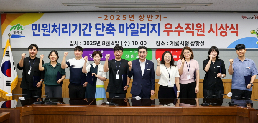 [ÃæÃ»ÇÖÀ̽´=ÀÌÈ­Áø ±âÀÚ] °è·æ½Ã(½ÃÀå ÀÌÀÀ¿ì)´Â 6ÀÏ ½Ãû »óȲ½Ç¿¡¼­ ¡®¹Î¿øÃ³¸® ¸¶Àϸ®Áö ¿ì¼ö°ø¹«¿ø¡¯ ½Ã»ó½ÄÀ» °³ÃÖÇϰí, ½Å¼ÓÇÑ ¹Î¿øÃ³¸®·Î ½Ã¹Î ÇàÁ¤ÆíÀǸ¦ ³ôÀÎ 10¸íÀÇ Á÷¿øÀ» ¼±Á¤ÇØ »óÀå°ú ºÎ»óÀ» ¼ö¿©Çß´Ù°í ¹àÇû´Ù.