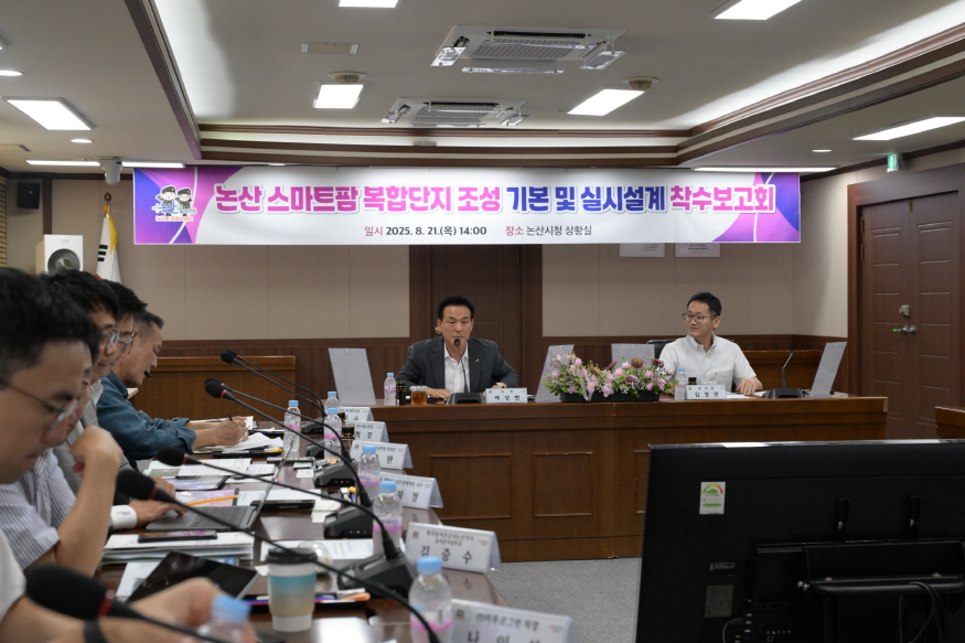 [ÃæÃ»ÇÖÀ̽´=ÀÌÈ­Áø ±âÀÚ] ³í»ê½Ã(½ÃÀå ¹é¼ºÇö)´Â 21ÀÏ ½Ãû »óȲ½Ç¿¡¼­ ¡®³í»ê ½º¸¶Æ®ÆÊ º¹ÇÕ´ÜÁö Á¶¼º»ç¾÷¡¯ÀÇ ±âº» ¹× ½Ç½Ã¼³°è Âø¼öº¸°íȸ¸¦ °³ÃÖÇÏ°í º»°ÝÀûÀÎ »ç¾÷ ÃßÁø¿¡ µ¹ÀÔÇß´Ù.